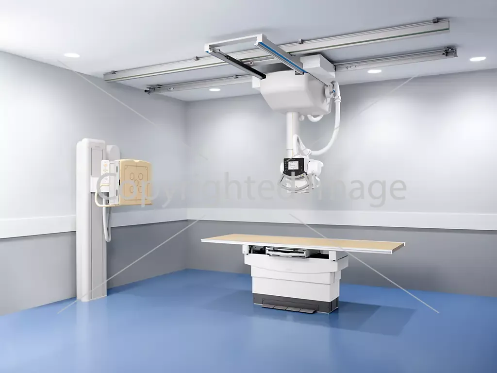 - Універсальний кабінет – однодетекторна система з автоматизованим стельовим кронштейном, вертикальним стендом і столом із підвіскою, яка дозволяє знімати будь-які анатомічні зони без зміни положення пацієнта.